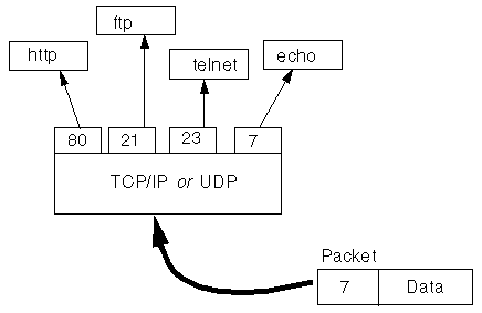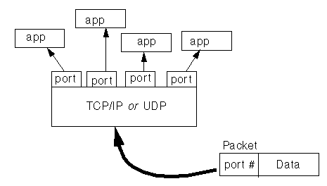 Generally speaking, a computer has a single physical connection to the network. All data destined for a particular computer arrives through that connection. However, the data may be intended for different applications running on the computer. So how does the computer know which application to forward data to? Through the use of ports.Through the classes in java.net, Java programs can use TCP or UDP to communicate over the Internet. The URL, URLConnection, Socket, and SocketServer classes all use TCP to communicate over the network. The DatagramPacket and DatagramServer classes use UDP.Data transmitted over the Internet is accompanied by addressing information that identifies the computer and the port that it's destined for. The computer is identified by its 32-bit IP address, which IP uses to deliver data to the right computer on the network. Ports are identified by a 16-bit number, which TCP and UDP use to deliver the data to the right application.