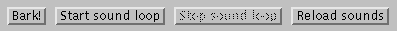 stop()andstart()methods as follows:public void stop() { //If one-time sound were long, we'd stop it here, too. //looping is a boolean instance variable that's initially //false. It's set to true when the "Start sound loop" button //is clicked and to false when the "Stop sound loop" or "Reload //sounds" button is clicked. if (looping) { loopClip.stop(); //Stop the sound loop. } } public void start() { if (looping) { loopClip.loop(); //Restart the sound loop. } }The SoundExample applet features three classes: