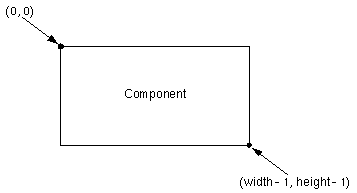 Each Component has its own integer coordinate system, ranging from (0, 0) to (width - 1, height - 1), with each unit representing the size of one pixel. As the following figure shows, the upper left corner of the Component's drawing area is (0, 0). The X coordinate increases to the right, and the Y coordinate increases downward.